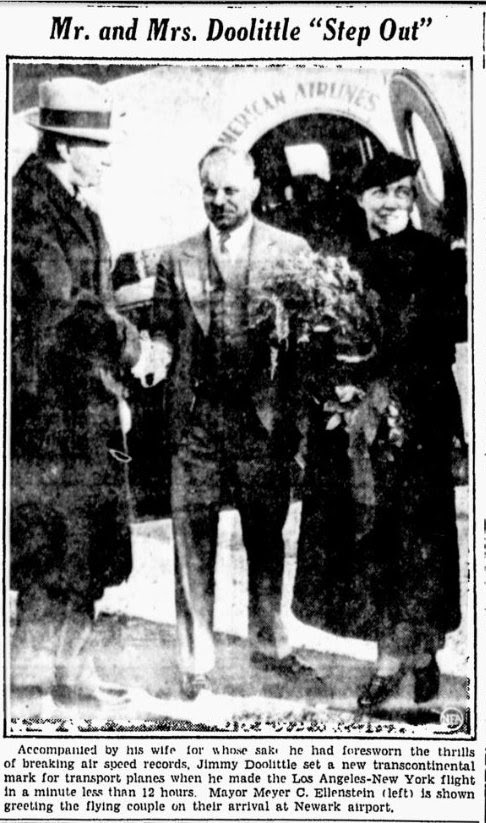 Jimmy Doolittle sets a new transcontinental mark for transport planes. Los Angeles to New York in one minute short of 12 hours.